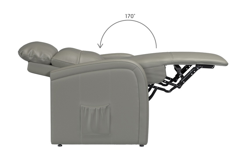 お客様の頭部の角度にこだわった、最大170°の無段階リクライニング設計。施術中も圧迫感なく、自然な姿勢でリラックスしていただけます。首・肩まわりへの負担も少なく、長時間の施術にも最適です。