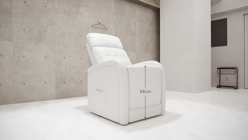 アイラッシュ・アイブロウ施術に最適な座面高66cmは、施術者の動線と姿勢をしっかりサポートします。適度な高さがあり、お客様も乗り降りしやすく、施術者の腰への負担も軽減。